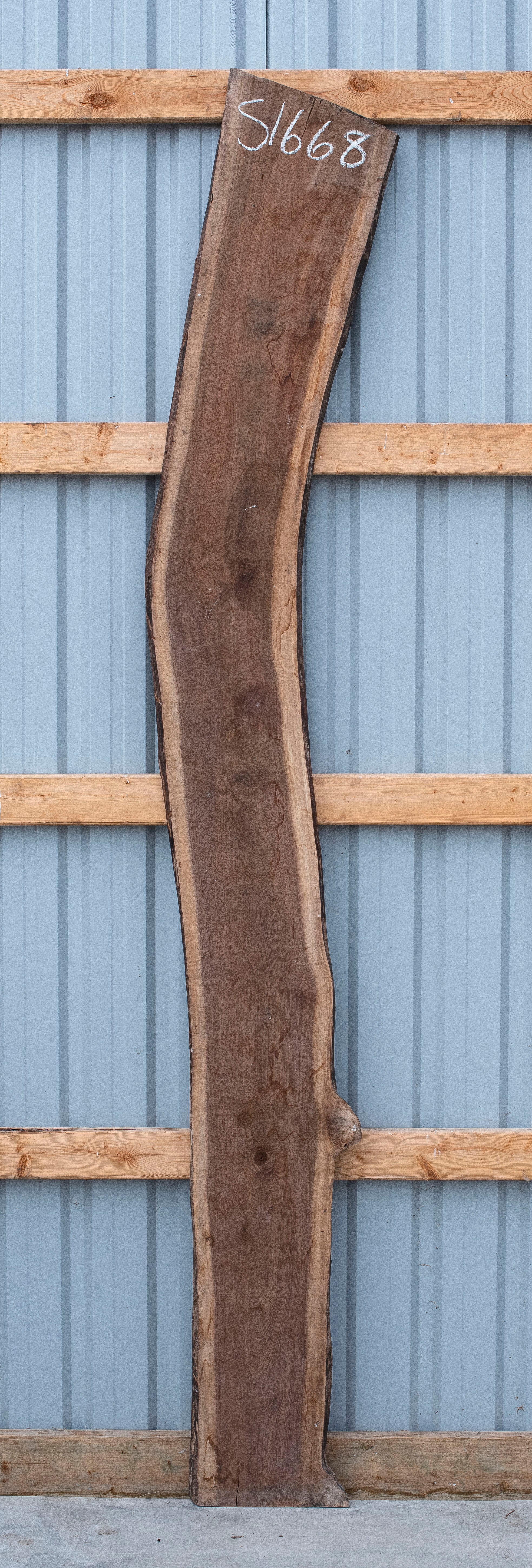 Very nice, shapely, and flaw free live edge black walnut slab.